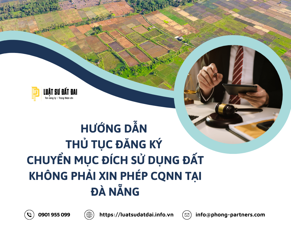 Bạn đang có nhu cầu chuyển mục đích sử dụng đất tại Đà Nẵng nhưng chưa rõ trường hợp nào phải xin phép, trường hợp nào không cần? Trong bài viết này, Phong & Partners sẽ giúp bạn hiểu rõ quy định pháp luật hiện hành, đồng thời tổng hợp chi tiết các điều kiện, hồ sơ, trình tự và quy trình thực hiện thủ tục đăng ký chuyển mục đích sử dụng đất không phải xin phép cơ quan nhà nước. Qua đó, người dân có thể tiết kiệm thời gian, tránh sai sót và an tâm khi thực hiện thủ tục đất đai tại Đà Nẵng.