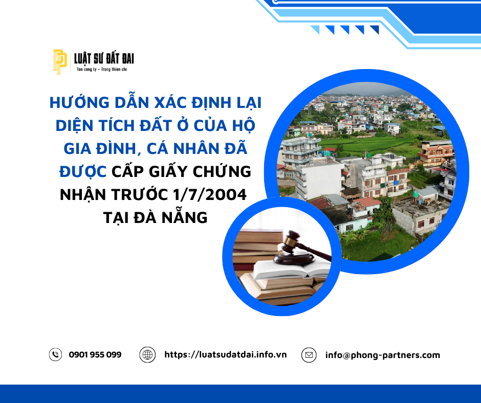 HƯỚNG DẪN XÁC ĐỊNH LẠI DIỆN TÍCH ĐẤT Ở CỦA HỘ GIA ĐÌNH, CÁ NHÂN ĐÃ ĐƯỢC CẤP GIẤY CHỨNG NHẬN TRƯỚC 1/7/2004 TẠI ĐÀ NẴNG