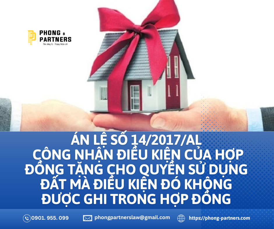 ÁN LỆ SỐ 14/2017/AL VỀ CÔNG NHẬN ĐIỀU KIỆN CỦA HỢP ĐỒNG TẶNG CHO QUYỀN SỬ DỤNG ĐẤT MÀ ĐIỀU KIỆN ĐÓ KHÔNG ĐƯỢC GHI TRONG HỢP ĐỒNG