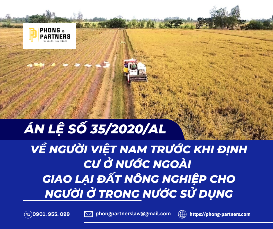 ÁN LỆ SỐ 35/2020/AL VỀ NGƯỜI VIỆT NAM TRƯỚC KHI ĐỊNH CƯ Ở NƯỚC NGOÀI GIAO LẠI ĐẤT NÔNG NGHIỆP CHO NGƯỜI Ở TRONG NƯỚC SỬ DỤNG