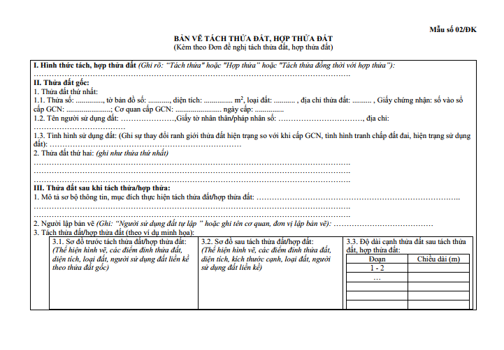 BẢN VẼ TÁCH THỬA ĐẤT, HỢP THỬA ĐẤT