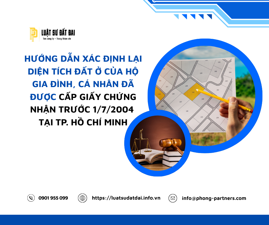HƯỚNG DẪN XÁC ĐỊNH LẠI DIỆN TÍCH ĐẤT Ở CỦA HỘ GIA ĐÌNH, CÁ NHÂN ĐÃ ĐƯỢC CẤP GIẤY CHỨNG NHẬN TRƯỚC 1/7/2004 TẠI HỒ CHÍ MINH